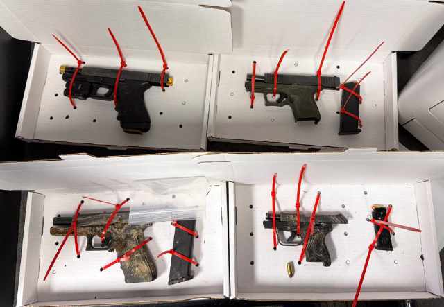 Officers also recovered four loaded firearms, including two with suspected illegal conversion switches attached.