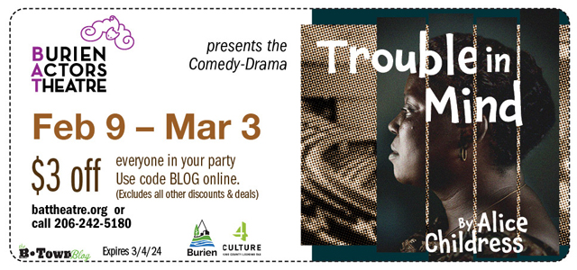 Trouble in Mind is sponsored by 4Culture through the King County Lodging Tax and the City of Burien.