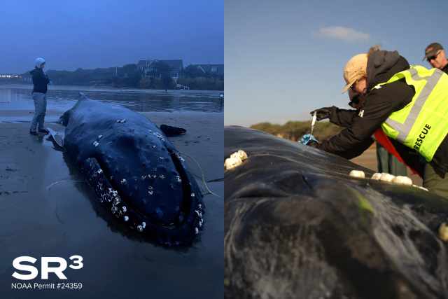 SR3’s Executive Director Casey McLean, who also serves as part of the group’s veterinary team, said responders faced difficult conditions, including 15-foot swells, sneaker waves, and a 20,000-pound injured animal moving unpredictably.