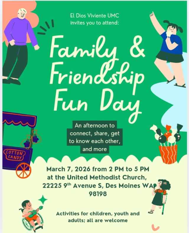 Des Moines United Methodist Church will host a Family and Friendship Fun Day this Saturday, March 7, from 2 p.m. to 5 p.m., inviting community members of all ages to gather for an afternoon of activities and connection.