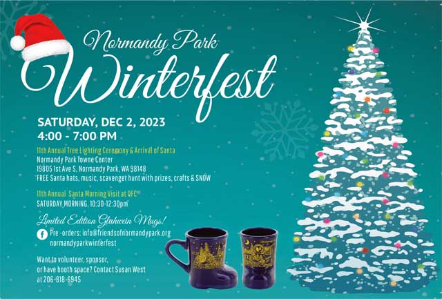 HOLIDAY ALERT – ‘Winterfest‘ is returning on Saturday, Dec. 2, 2023, from 4 – 7 p.m. to the Normandy Park Towne Center.