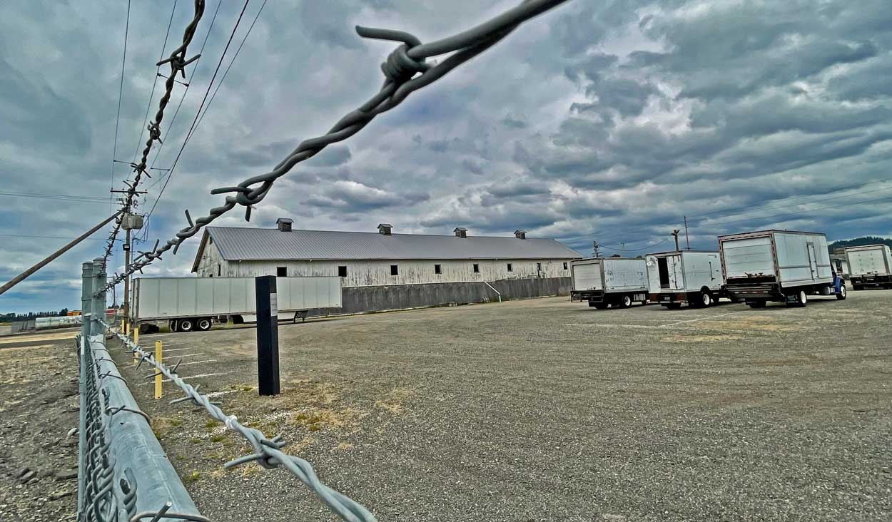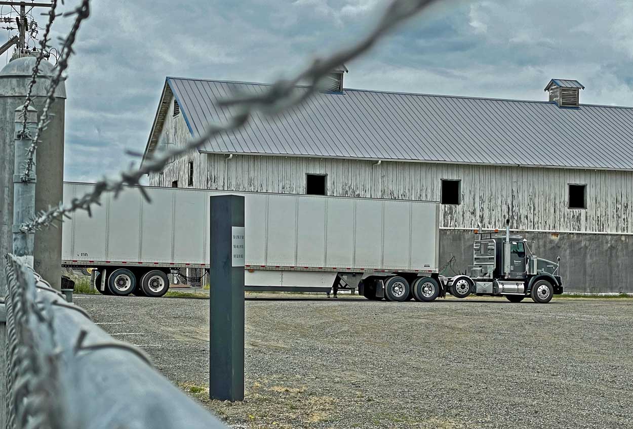 We got a tip from a driver who was picking up milk about the strange monolith, and were able to take these photos of it from behind a security fence with barbed wire on it:
