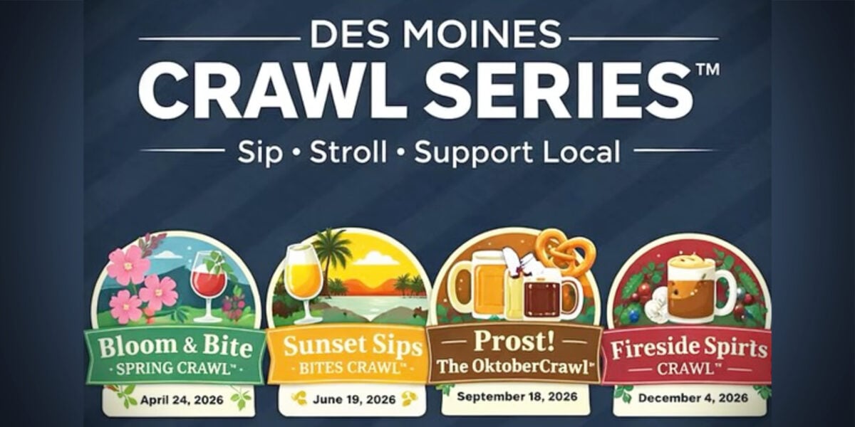 The new Des Moines Crawl Series™ – which begins this Friday, April 24 – is a curated, small-group event experience that guides guests through 4–5 standout local businesses in a single evening, offering an immersive way to explore the city’s food, beverage, and specialty destinations.