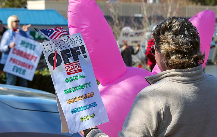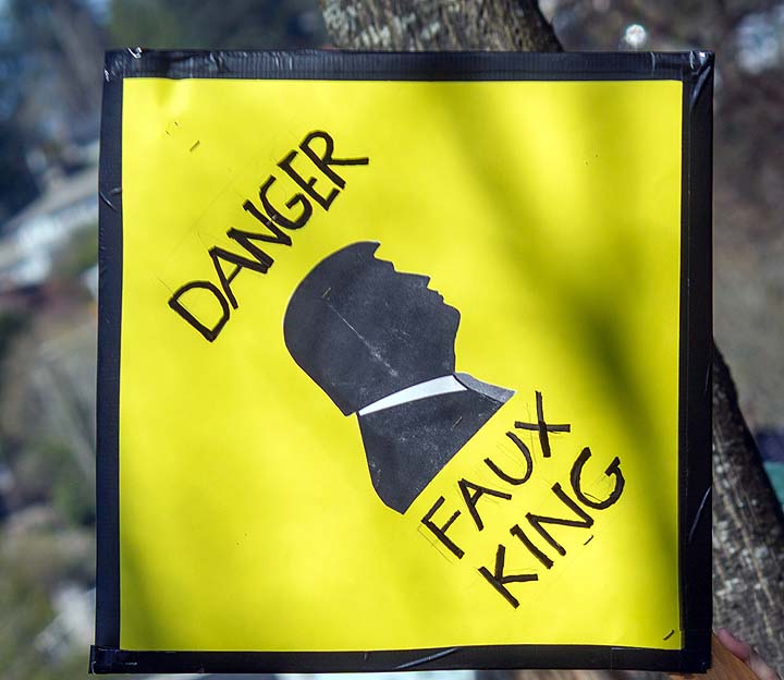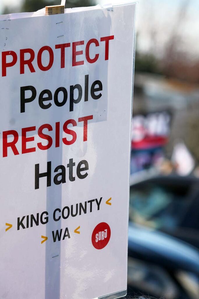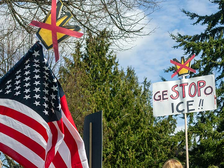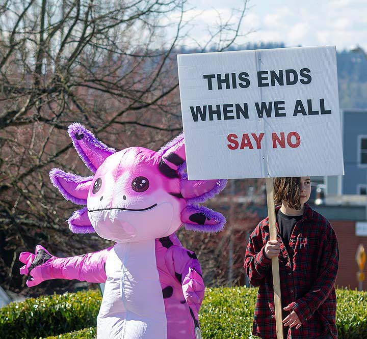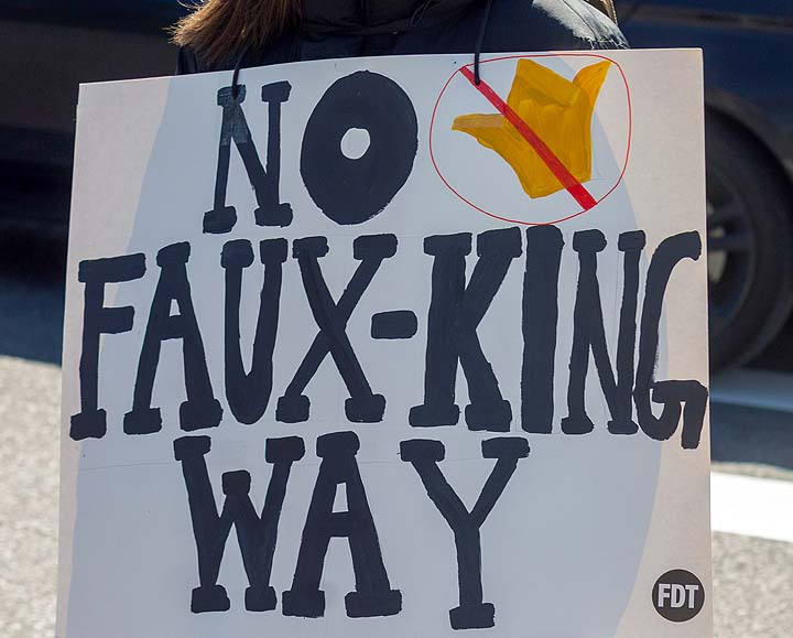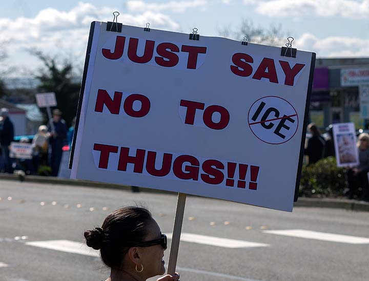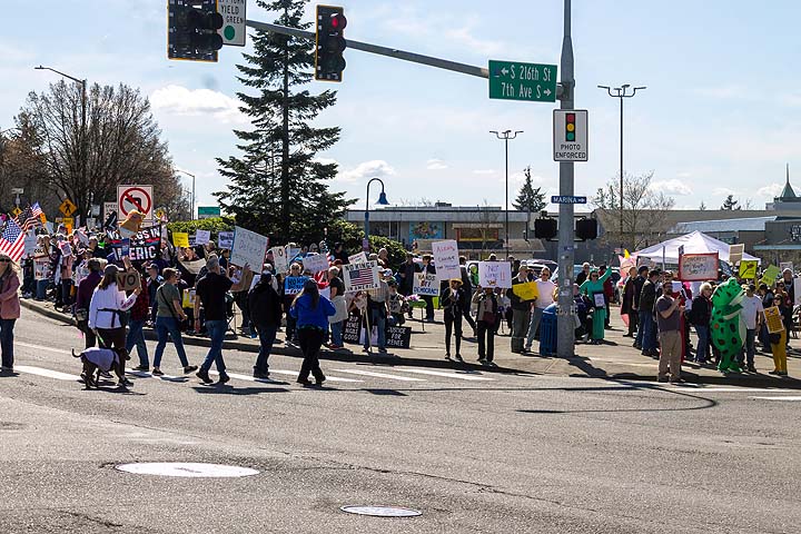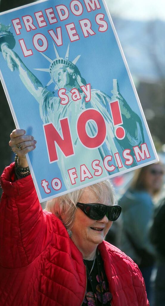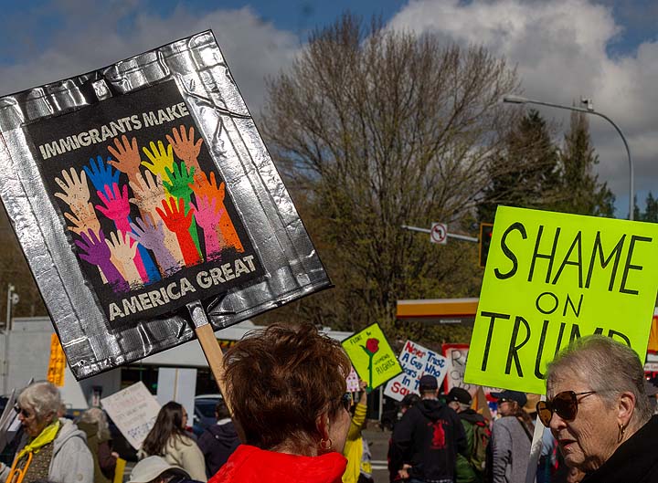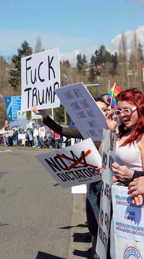 “I’ve been to all the No Kings rallies, including one in Poulsbo when we were visiting. Just like this one: friendly people. I want fairness for everybody. I don’t understand arresting people just because of the color of their skin. He’s looting the Treasury, stealing, stealing, stealing!”