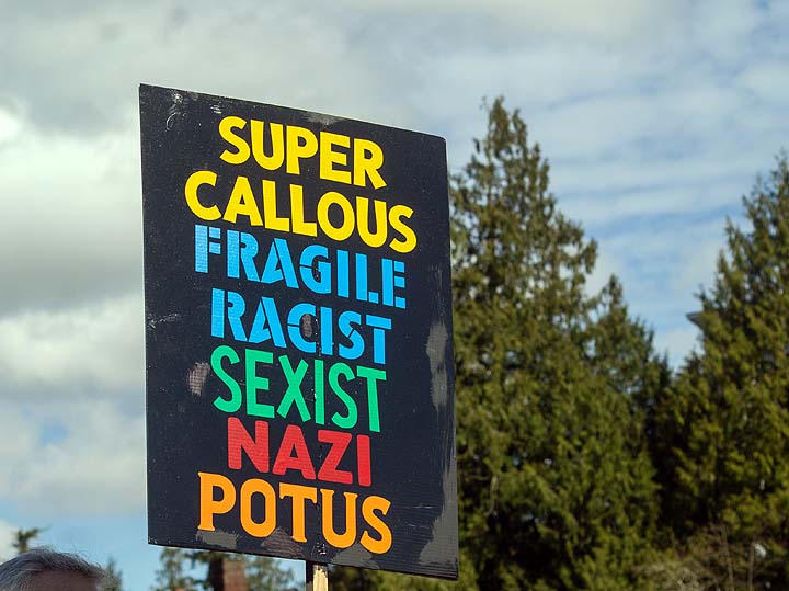 “There’s a sign over there that says it all: ‘F*ck Trump.’”