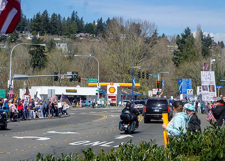 Below is video shot by Stephanie Batby Eden showing the crowds lining Marine View Drive in downtown Des Moines, WA: