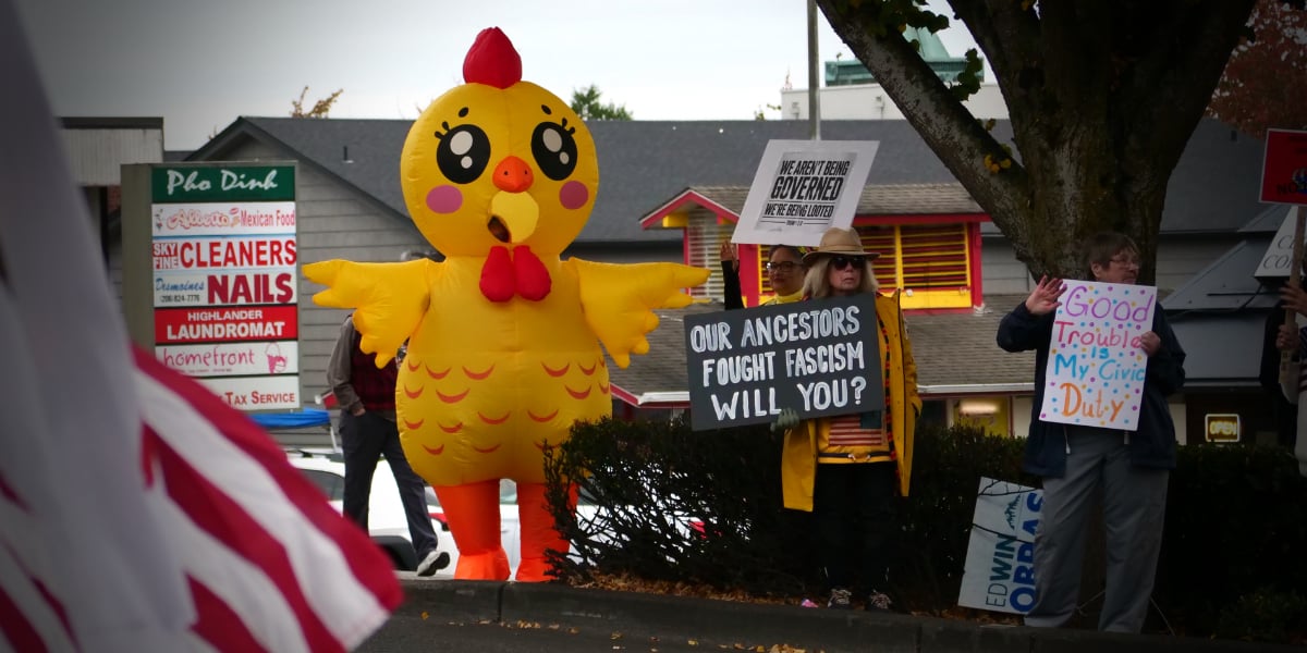 Brian, Normandy Park (precinct committee officer): “I came to show my displeasure with the current administration, to save democracy. I came up with my sign yesterday.” |
