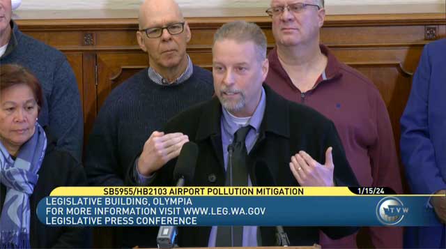 On Monday morning, Jan. 15, 2024, Sen. Karen Keiser (D-33rd District) and Rep. Tina Orwall (D-33rd District) held a press conference in Olympia, announcing new legislation aimed at mitigating environmental and health impacts of Sea-Tac Airport on surrounding communities.