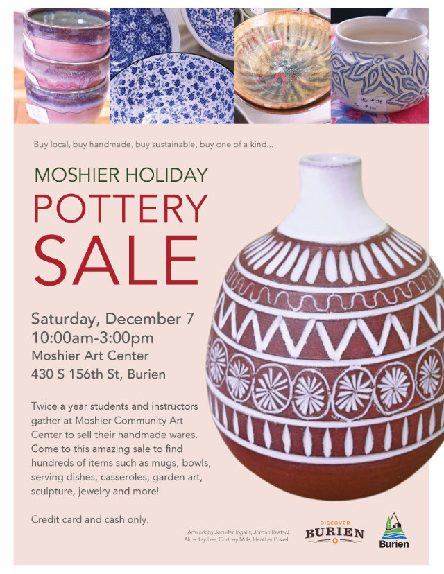 This great, annual sale will be held at the Moshier Art Center located at 430 S. 156th Street in Burien (map below).