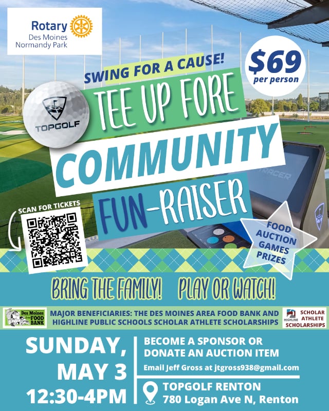 The Rotary Club of Des Moines and Normandy Park is inviting the community to a family-friendly “fun-raiser” next month aimed at supporting local food access and student scholarships.