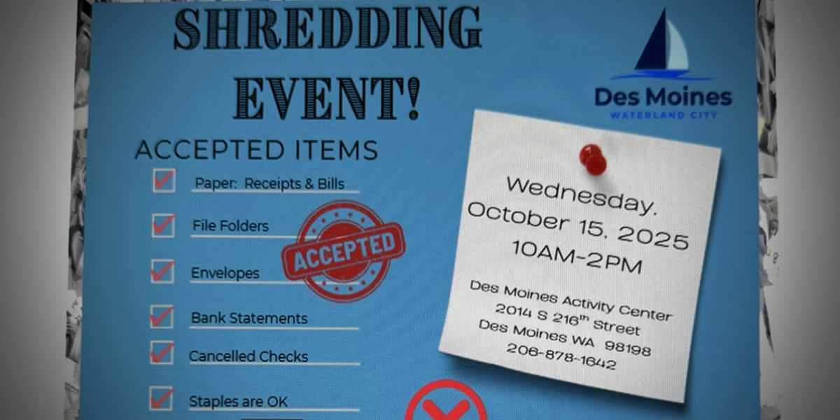 The City of Des Moines will host a community shredding event on Wednesday, Oct. 15, 2025, from 10 a.m. to 2 p.m. at the Des Moines Activity Center (map below). […]