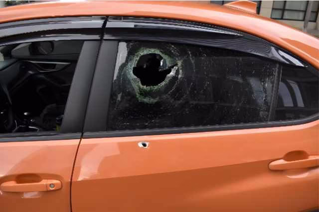 The suspect vehicle was described as a dark blue Oldsmobile minivan. The victim said the person who fired the shots was in the front passenger seat and described the shooter as a heavyset Black male, the patrol said.